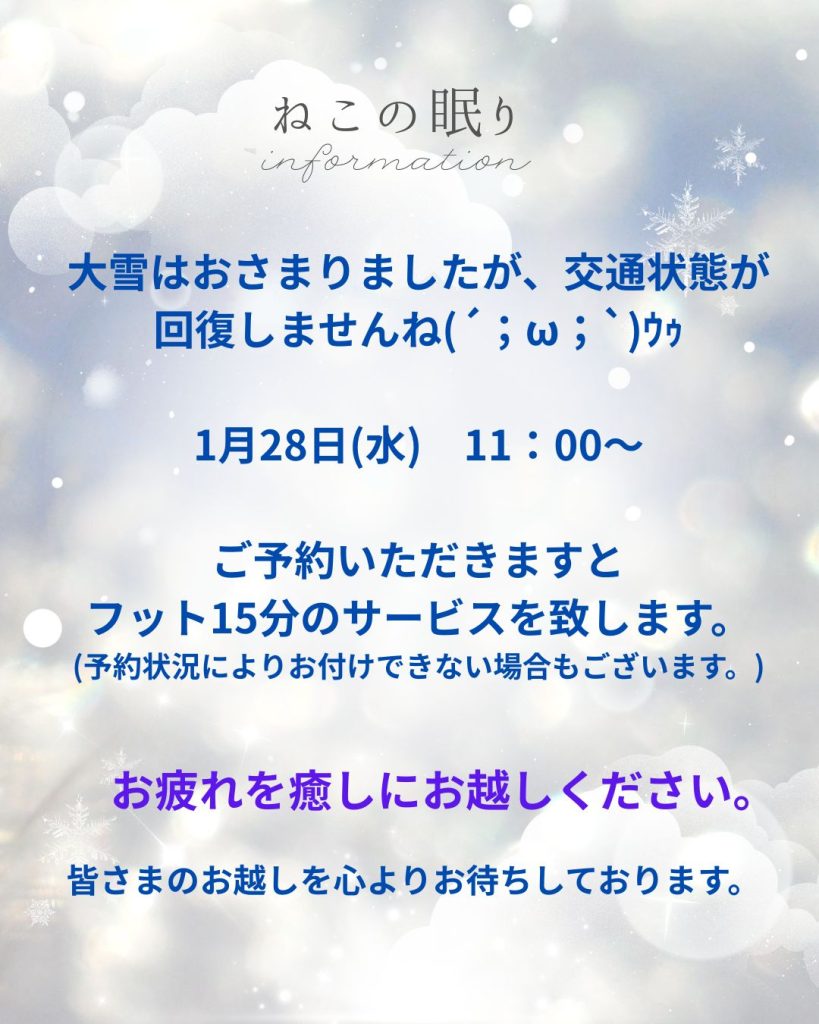 交通状況も足元も悪いですね。元気チャージに、お越しください。